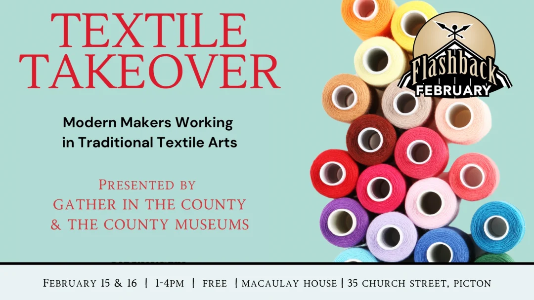 Chat with the artists, catch live demos, and dive into the rich, lively world of textile arts right here in Prince Edward County. It’s hands-on, interactive, and a whole lot of fun—don’t miss it! This event is free to attend.